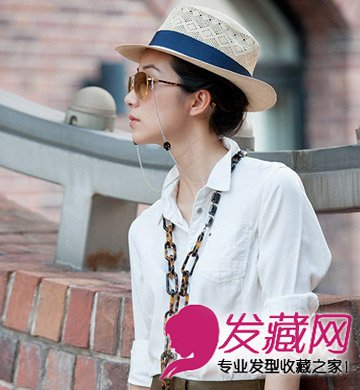 而清爽的盘发造型,一顶礼帽,墨镜衬衫帅气搭,呈现出中性女王范。