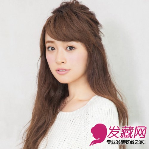 半扎发型加上麻花编织能让整个发型变得更加典雅有气质,自然的大波浪卷清晰自然,也能提升妩媚感。