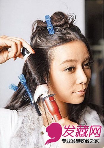 Step1:用电棒将整头发丝随意卷出波浪感。