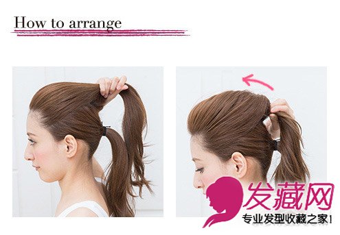 step1:将头发分成上下两部分,下部分绑成马尾。