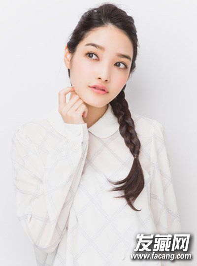 长长的头发编成精致的辫子,随意的摆动在肩头,森女范儿十足。