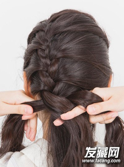 step3:再从右侧取出头发,一路编成精致的辫子。
