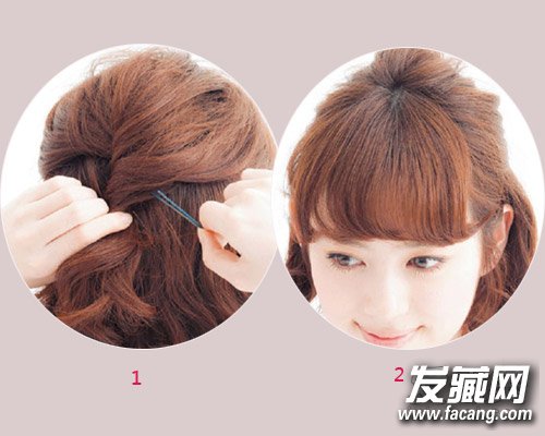 step1:取出上半部分头发扭转后用发夹固定。