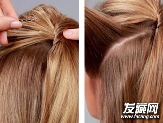 step4:如图,从耳朵后面的中间斜向上取出头发。