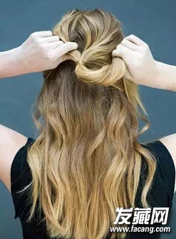 第一步:先将头发上半部分扎起来,然后再在扎起来的头发当中挖一个洞。