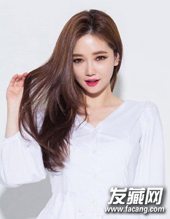 时尚中分造型设计本就是最百搭的造型,搭配深棕色的清新发色与简单的侧边长直发更添鹅蛋脸女生的温柔气质女神范儿。