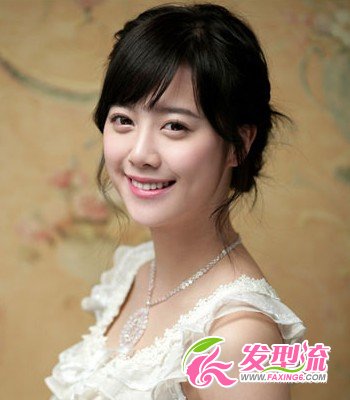 韩式盘发向来深入人心,额际几缕余留的发丝垂落耳下,营造出丝丝动人的风情。后面的发髻制造出的自然蓬松,尽显女性婉约气质。