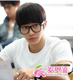 憨厚的西瓜太郎头,搭配一副黑色大边框眼镜很有书生范。顺直的发丝线条流畅,简单的一件白色T恤就能显得很是清爽。