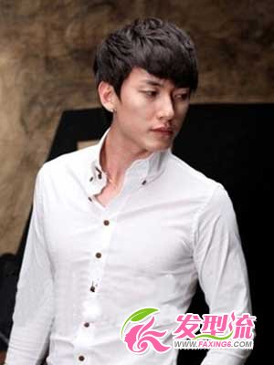 厚重有质感的覆盖式刘海以及层次不齐的秀发都打造出个性以及有效的修饰了较长的脸型!独特的鬓角设计呈现出V字的形状,能够让你不完美的脸型变得开始完美起来哦!保留黑色自然发色,打造出些许的纹路更加稳重帅气!