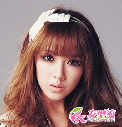 齐刘海卷发,漂亮的蝴蝶发箍,小性感的可爱女生味道。