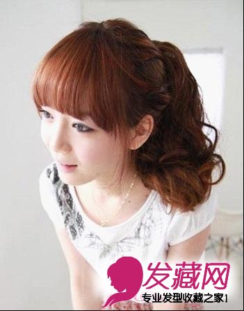 将长卷发扎成一个蓬松的马尾辫,自然清新大方,过眉的齐刘海凸显出女生灵动的双眸,气质迷人。精致的五官魅力无比,马尾的蓬松彰显出女性的清纯可爱,营造出了一个甜美可爱的女生形象。