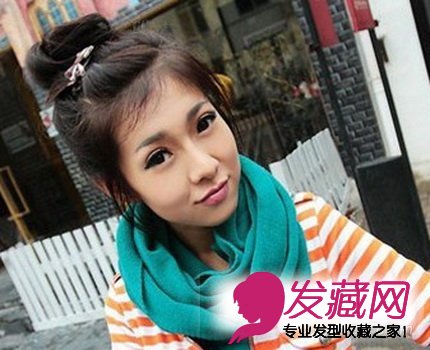 休闲简单款的花苞头,配上发饰的装饰可爱无比,露出额头更加活泼青春。