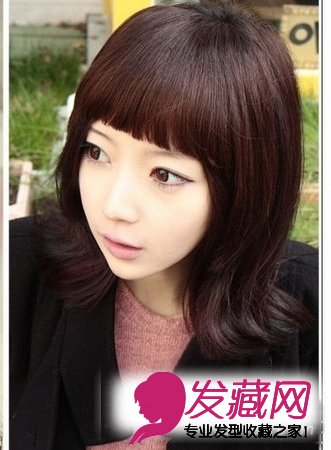 高于眉毛的直刘海非常适合瓜子脸的姑娘,很有清新萝莉的范儿。不过别忘了要加强头顶的弧度以及发尾的向外翻卷哦,这样会更显秀丽和甜美。