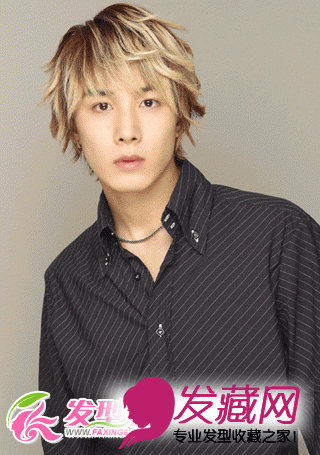 这款男士发型有点非主流的感觉,给人以时髦帅气的感觉,利用造型品将头发打造出束感,造型感极具帅气酷感,刘海部分的头发稍稍有些遮住眼睛,很有韩剧里面那种花样美少男的气质。