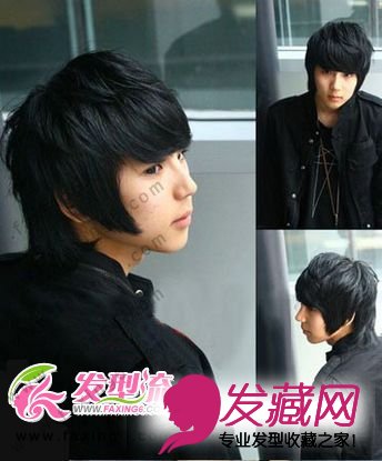 长而有型的鬓角是这款男生韩式发型的亮点,三角形状的鬓发,顺直紧贴于脸部线条,搭配着层次感丰富的刘海,厚重感十足,是男生小脸的经典发型哦!