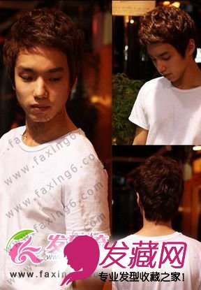 在韩式短发的基础上,染上深棕色的染发色,带有低调奢华感,清晰的纹理烫线条,和暗色的染发色相搭配,营造丝丝成熟的男人味。