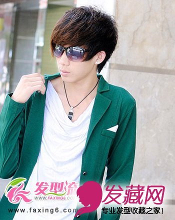 ,让整个发型更加的帅气动感,稍长的刘海遮盖住额头,散发着男生酷酷的帅气气息,挑染的发色,时尚度立即飙升。