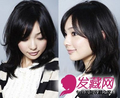 自然黑色发色的中长发,最适合那些希望保留清新质朴气息80后女性的最爱。刘海部分采用偏分的长刘海造型,几乎适合任何脸型。长卷发分成齐耳和齐锁骨的长短两层,能让头发造型更飘逸,在夏日也更轻薄凉爽。