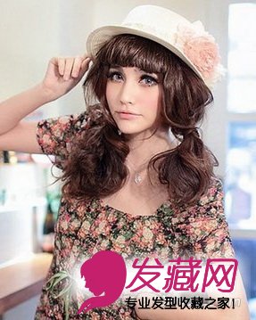 的基础上,分别在耳际边扎两束低位束发,松松的扎法制造出发型的蓬松效果,前额的平刘海和烫发发丝闪烁着柔亮的金属光泽,一顶森系帽子更衬托了女生大自然的气息。