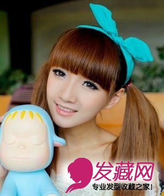 特别柔顺的直发发丝,打造出双扎发束发时,更显发型的飘逸感,发丝间长度不一的打造,制造出了许许层次效果,一条亮眼的蓝色蝴蝶结发带,展现着女生青春与纯洁魅力。