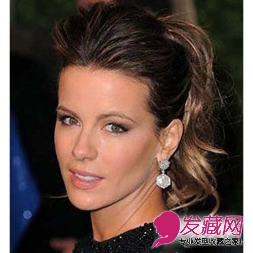 蓬松的扎起马尾,露出额头,很有女王的气质,马尾是金色的大卷发,随意一些,头顶的头发也要打造的蓬松些。