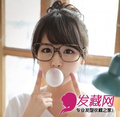 这款发型将长发扎成一个丸子的形象,这款丸子头给人很可爱很甜美的感觉,韩式刘海与两颊自然垂落的头发很好的交融正一起。嘟起的小嘴更显甜美迷人。