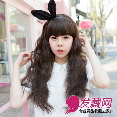 蛋卷头啦,甜美的齐刘海不但可以修饰脸型,装嫩效果也是一流呢。配上可爱的兔耳朵发箍,真的是萌到一片啊。