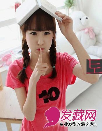 齐刘海的双麻花辫,绝对是卖萌的最佳发型,嘟嘟的小嘴超级可爱