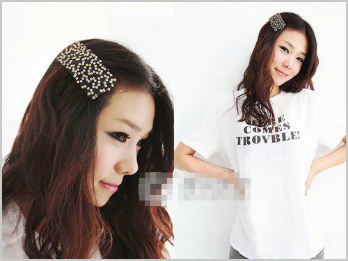 这种发夹的用法非常简单,把头发都梳到一起,用它夹住就行了。用它做发型的变化不多,也就是正着用、反着用、侧着用而已。不过加上不同的头发梳理方法,就变化多端了。