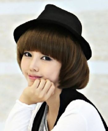 小编点评:经典的BOB头,可以说是韩国女生发型中仅次于韩式大卷的受欢迎程度的一个高人气发型。这款BOB头刘海短短的,配搭一个礼帽打造学院风格,实在是装嫩武器啊。
