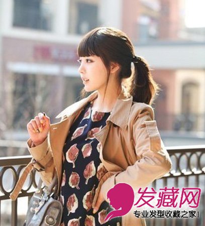 简单的马尾辫,齐刘海,两边留出的发束在脸颊旁,散发淡淡的女人味。