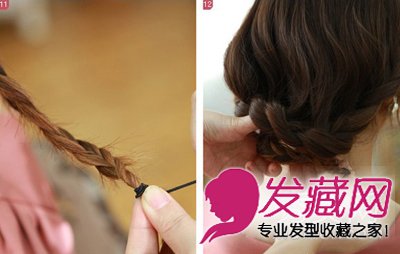 步骤六:用黑色小发带固定发尾。并将发辫重叠至右侧。