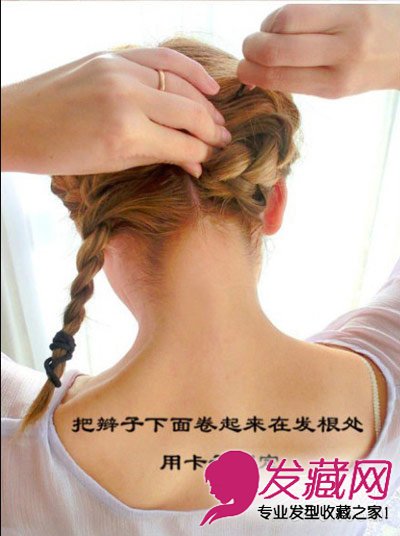 步骤7:把步骤辫子下面卷起来在发根处用卡子固定。