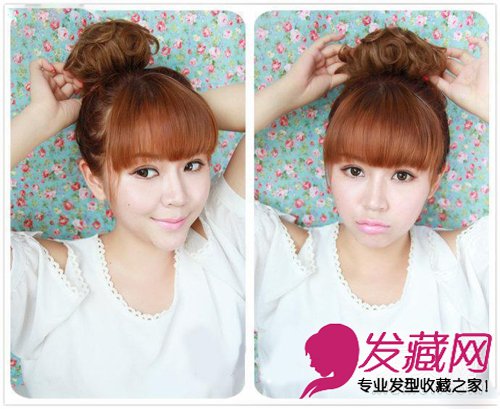 第五步:将发包上的抽绳藏进发包内,并且拉松发包上的发丝。
