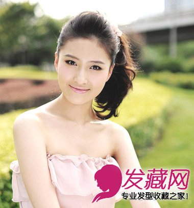 ,头顶制造出蓬松感才会使造型看上去更加的自然大方穿上抹胸裙带点妩媚性感。