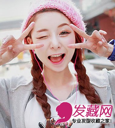 双马尾发型一直都是学生发型的代表,编两个麻花辫,呆萌感十足,一顶毛线帽,保暖显活力。