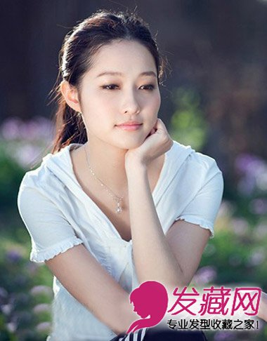 ,高马尾造型,梳理的光洁把额头露出来,配上淡淡的装,一身休闲装扮,尽显文静青春的校园女生风采。
