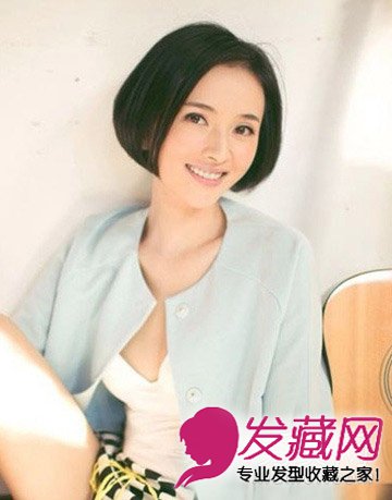 笑容温柔,中分波波头发尾打出内扣更增加知性美,脸颊发丝修饰轻松塑造精巧的巴掌脸型,恬静的黑