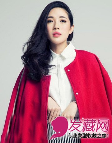 时尚的黑色波浪搭在一旁,妩媚女人味十足,红唇妖娆身披桃红色披风,甜美中不失大气尽显高挑身材与姣好面容。