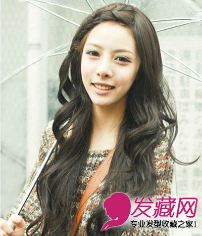 将刘海侧分,编织出麻花辫放在一侧,披散着长长的头发,特别美丽婉约。