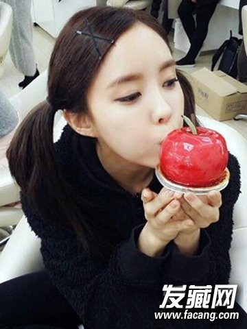 扎简单大方的双马尾辫发型,露额扎发清新亮丽。