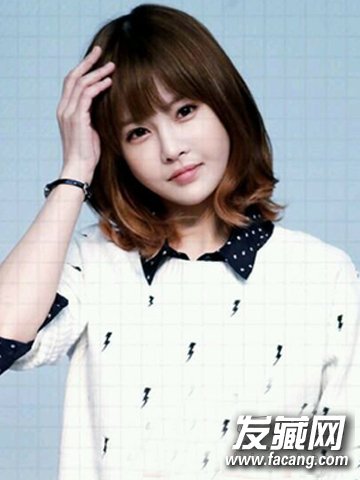 ,挑染棕色的染发色很有显肤白的效果,齐刘海短卷发也很适合脸大的妹纸。
