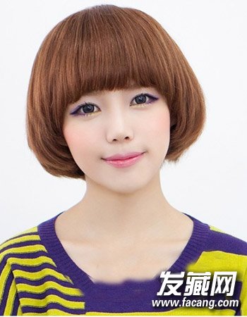 ,这样一款呆萌的发型也是潮人的最爱,包住耳朵的短发让脸型更显小,遮住眉毛的齐刘海更加可爱呆萌。