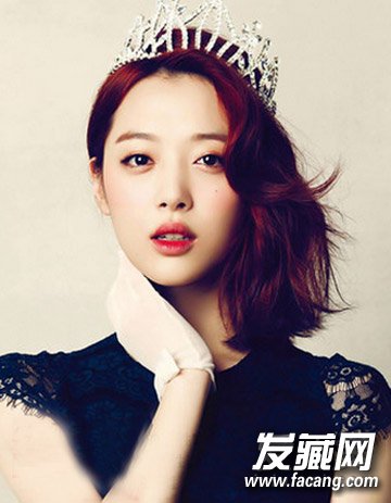 在烫发的处理下显露出无比气质的一面来,酒红以亮丽抢眼,加上皇冠点缀十分显气质。