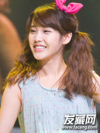 扎双马尾也是很受女生们青睐的一款气质发型,蓬松的斜刘海长卷发扎简单的马尾辫发型,搭配发饰可爱清新。