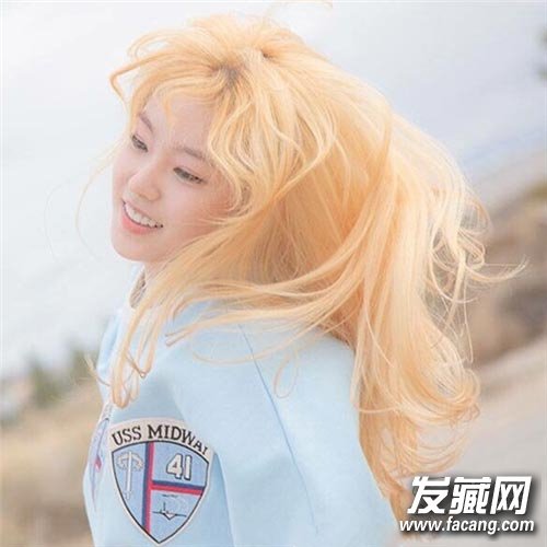 可以看到Irene的金色长发在阳光下也非常漂亮,发尾处是内扣的卷曲,刘海的弧线也恰到好处,金发能演绎不同的感觉,除了神秘大气,青春阳光也不在话下。