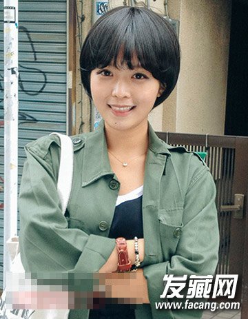 ,黑色的波波头短发清爽可爱,微翘的齐刘海设计更是时尚新颖。