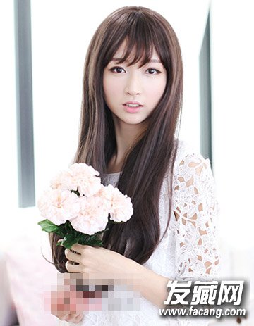 这款展现了女生甜美气质的长发发型,空气感刘海设计是韩式发型最具代表的一款发型设计,长发柔顺自然,显得清新唯美。