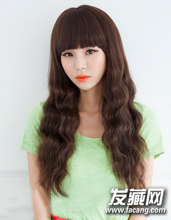非常甜美有型的长发蛋卷头发型,整齐修剪的齐
