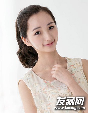 这款韩式马尾扎发,无刘海的设计露出了光洁的额头,显得清爽无比,卷发的马尾也非常的时尚哦!